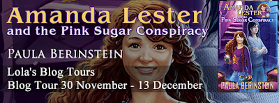 Welcome to my stop on the Amanda Lester and the Pink Sugar Conspiracy by Paula Berinstein blog tour hosted by organized by Lola's Blog Tours. This blog tour runs from November 30th through December 13th and you can see the full tour schedule here. Currently, Berinstein's new middle grade series includes three books with Amanda Lester and the Orange Crystal Crisis (Amanda Lester, Detective #2) and Amanda Lester and the Purple Rainbow Puzzle (Amanda Lester, Detective #3). Read on for blurbs of each installment, an excerpt from the book that started it all, to learn about the author, and for the chance to win a tour wide giveaway.